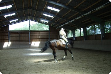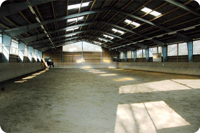 Bei schlechtem Wetter und für die intensiven Arbeitsstunden bieten sich 1 Reithalle 20m X 40m, 1 Longierhalle 16m X 16m, sowie 1 Round Pan an. Hier wurde nur der beste Qualitätsboden verwendet, der Hufschlag wird von uns täglich 1 x hergerichtet.